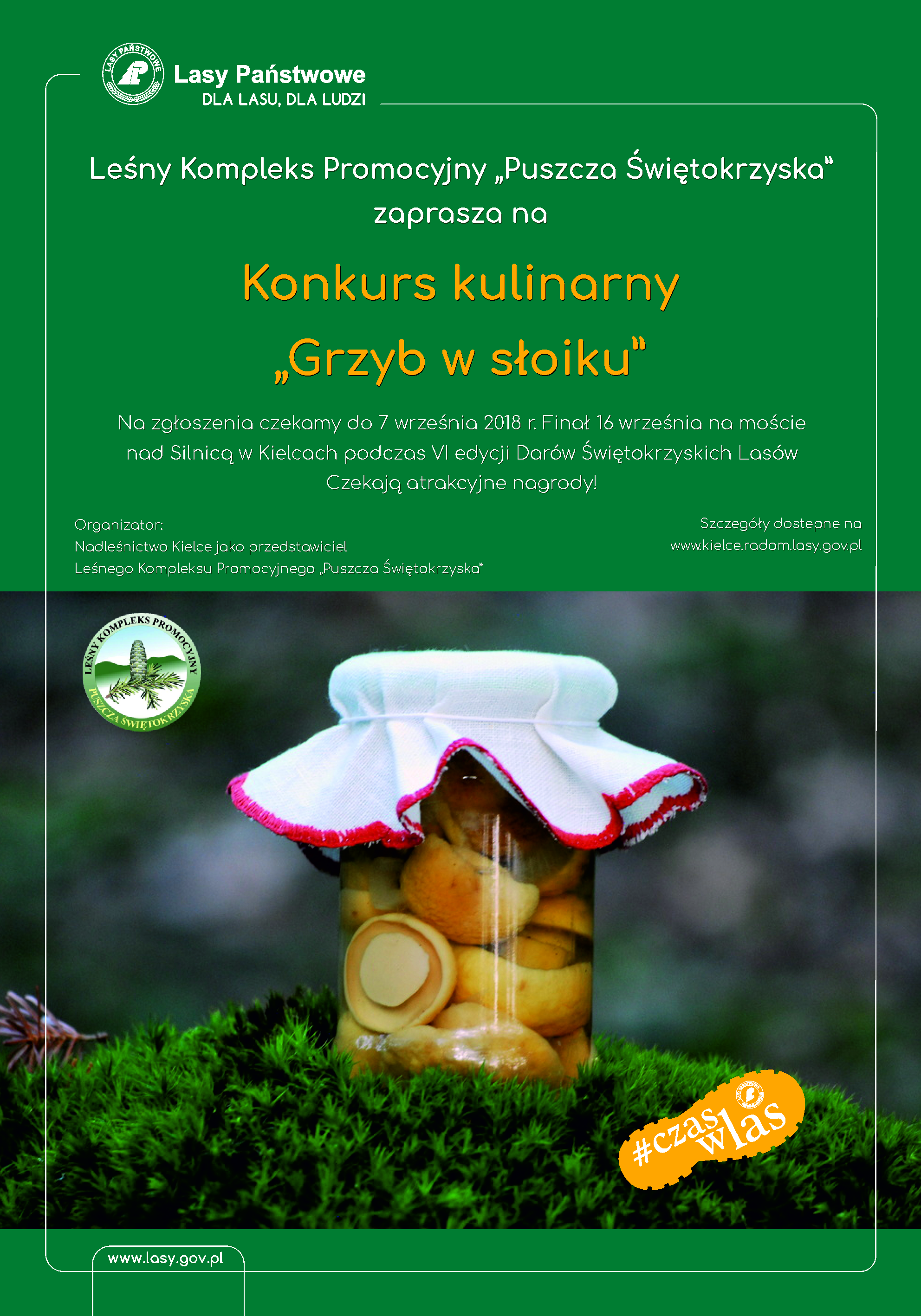 Nadleśnictwa Leśnego Kompleksu Promocyjnego „Puszcza Świętokrzyska”: Daleszyce, Kielce, Łagów, Skarżysko, Suchedniów, Zagnańsk oraz Regionalna Dyrekcja Lasów Państwowych w Radomiu serdecznie zapraszają do udziału w konkursie kulinarnym „Grzyb w słoiku”.
